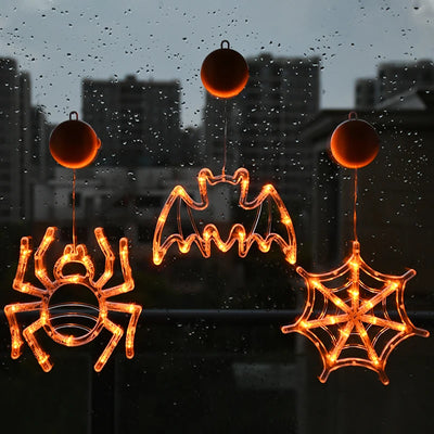 Halloween LED Light Pumpkin Lamp Spider Bat Ghost Hanging Sucker Light Decor Glass Window Decoration For Party Holiday Lighting