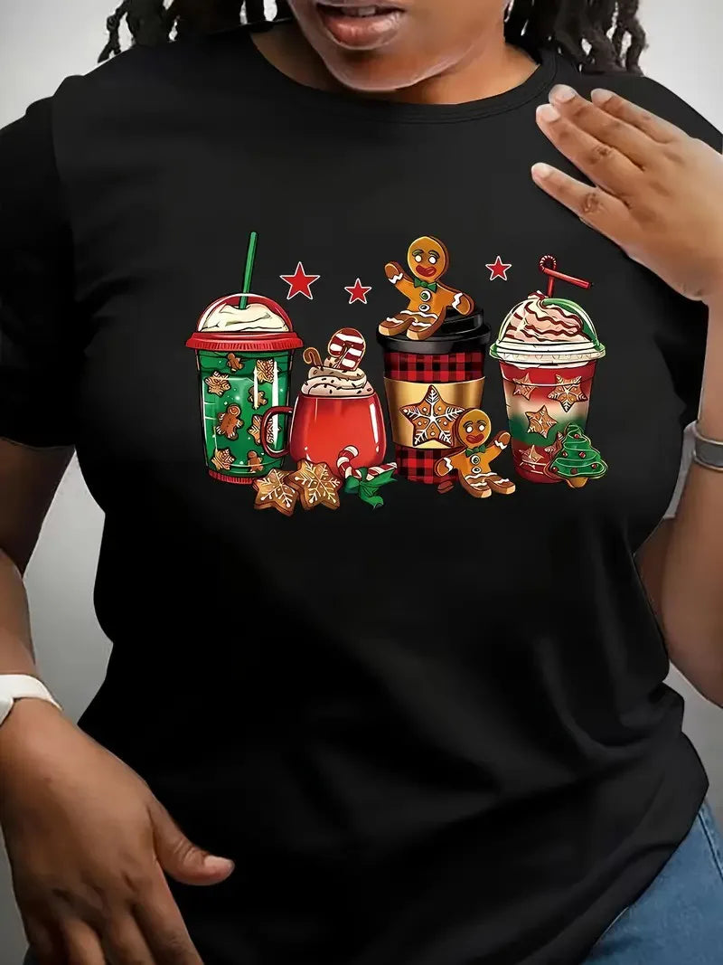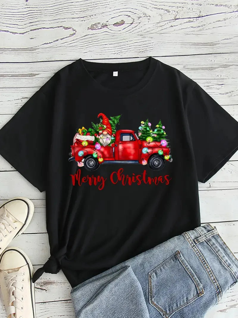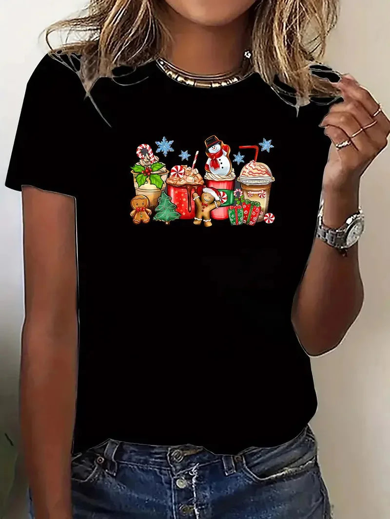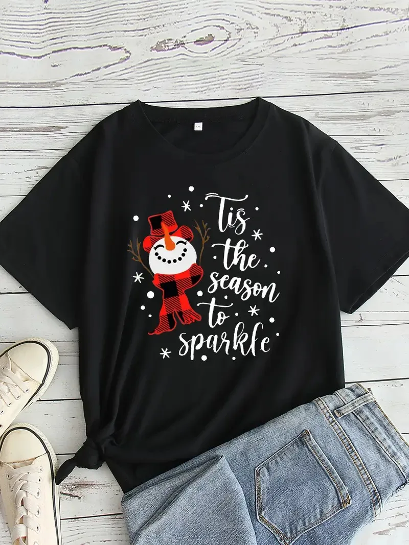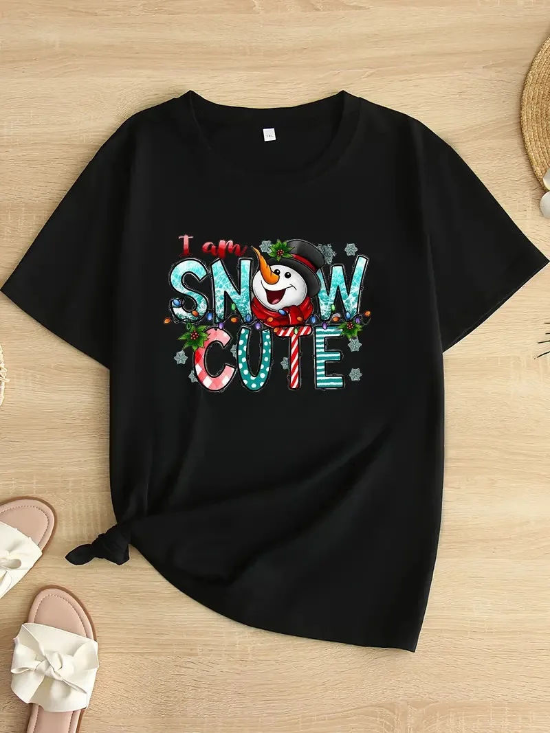 Christmas Graphic T Shirt Unisex Cute Gnome and Snowman Printed Casual Short - Sleeve Summer Top Suitable for Christmas Parties