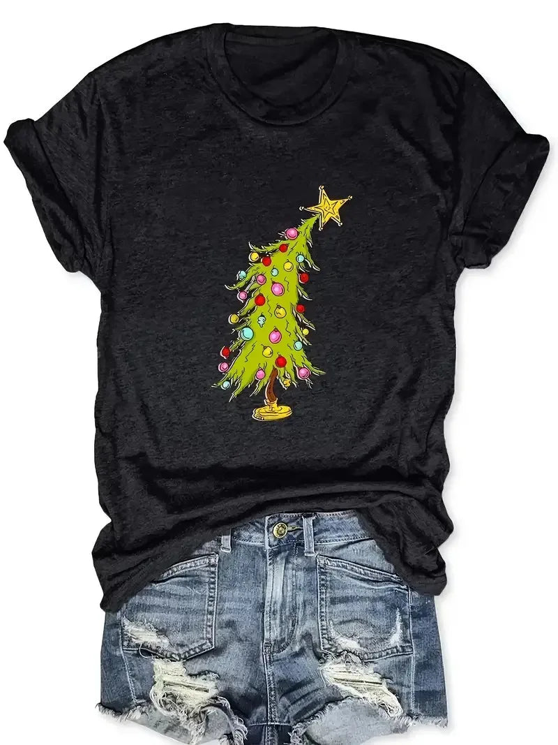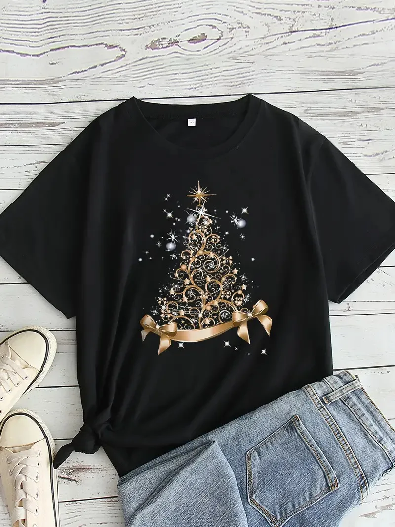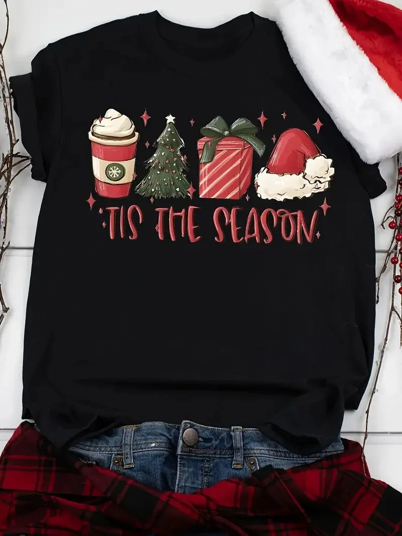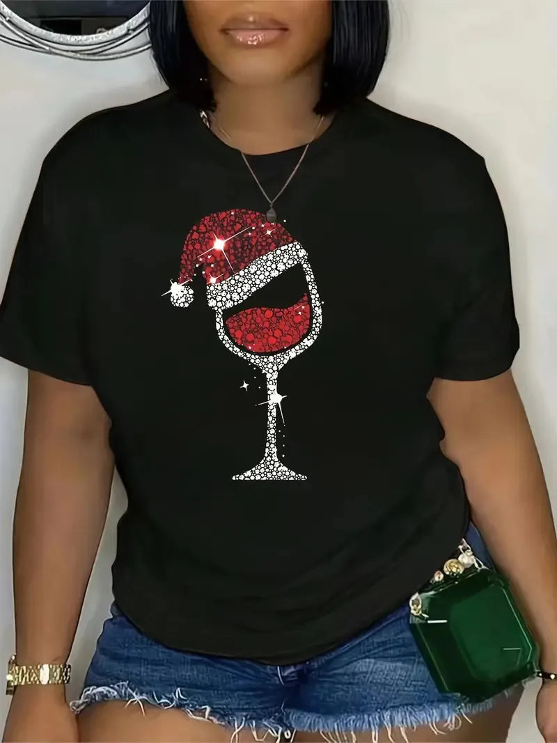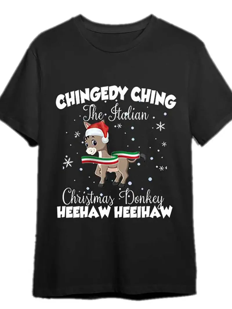 Christmas Graphic T Shirt Unisex Cute Gnome and Snowman Printed Casual Short - Sleeve Summer Top Suitable for Christmas Parties