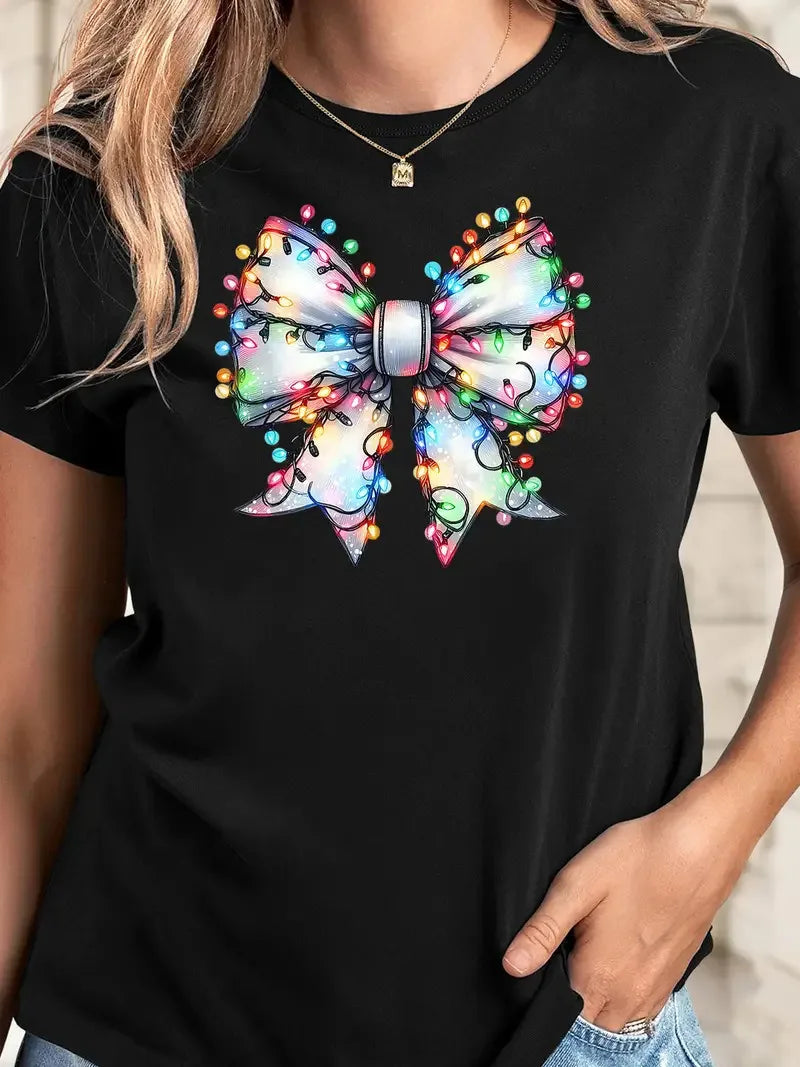 Women's Casual Loose Fitting Printed T-shirt Round Neck Pullover Short Sleeved Top