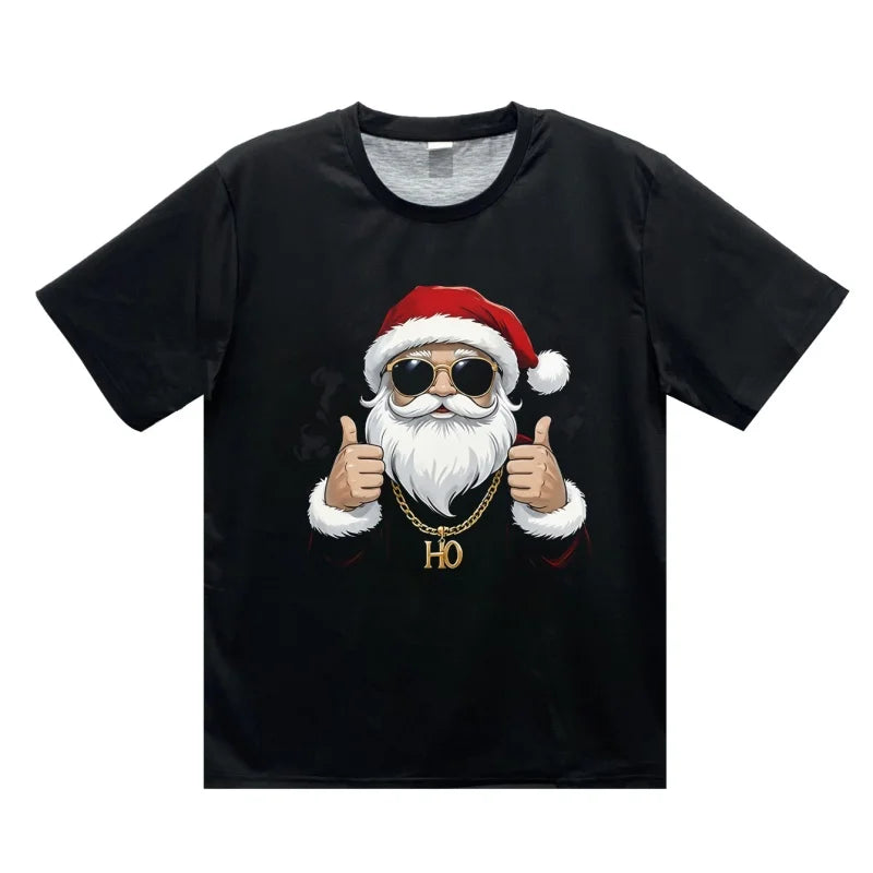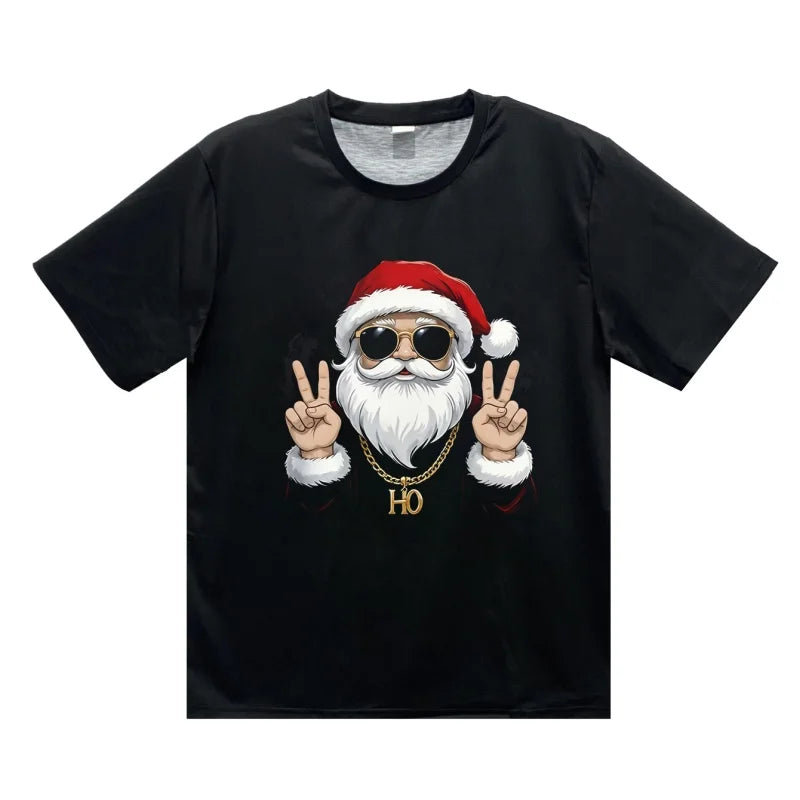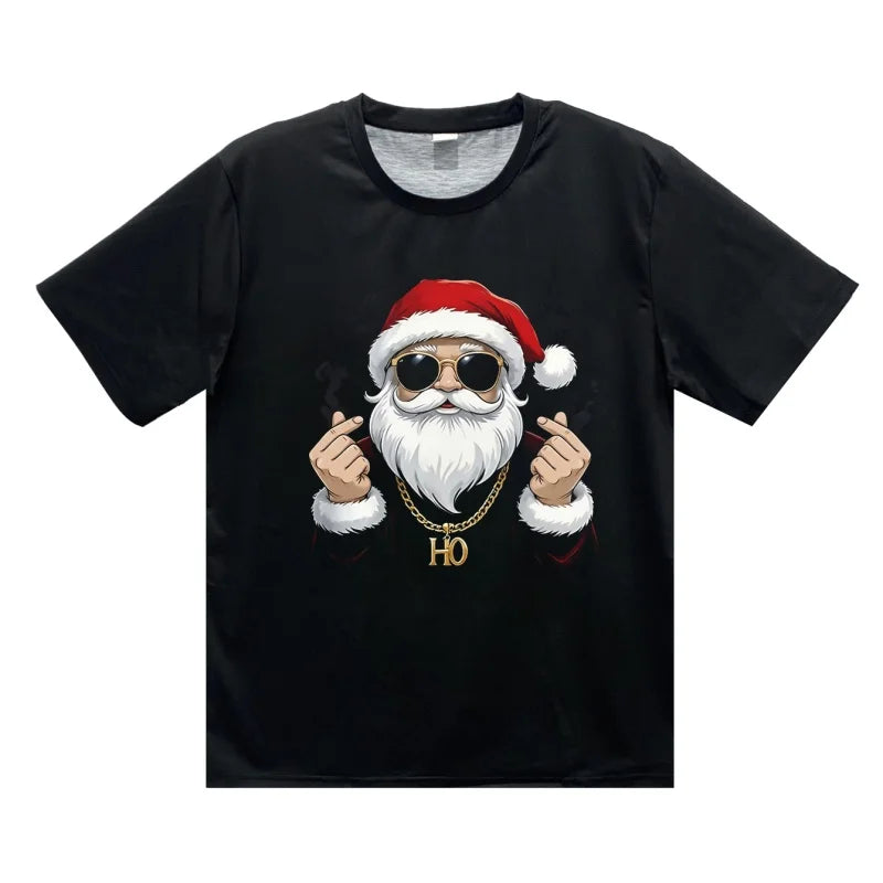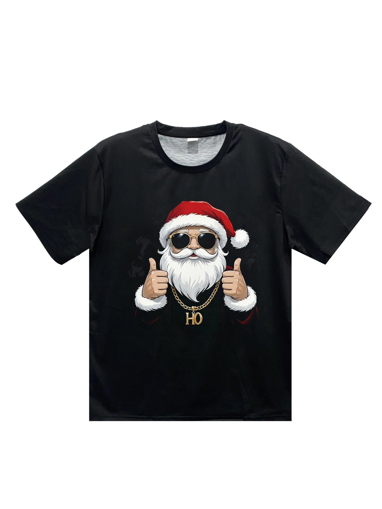 Men's Christmas Cool Santa Claus Gesture Print T-shirt Casual Slightly Stretchy Short-sleeved Crew Neck Tops Outdoor Wear.